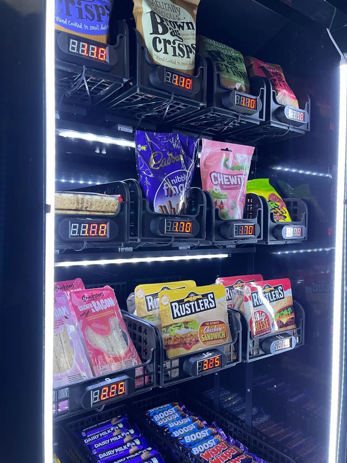 Unlike traditional vending machines, products are not mechanically dispensed. Customers physically pick items from shelves, creating a more natural shopping experience.